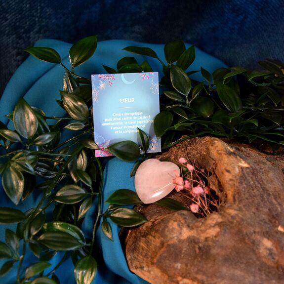 Disponible en plusieurs formes : cœur en quartz rose, étoile en angel aura, lune en pierre de lune, nuage en cristal de roche, galet des soucis en améthyste, pyramide en obsidienne noire.